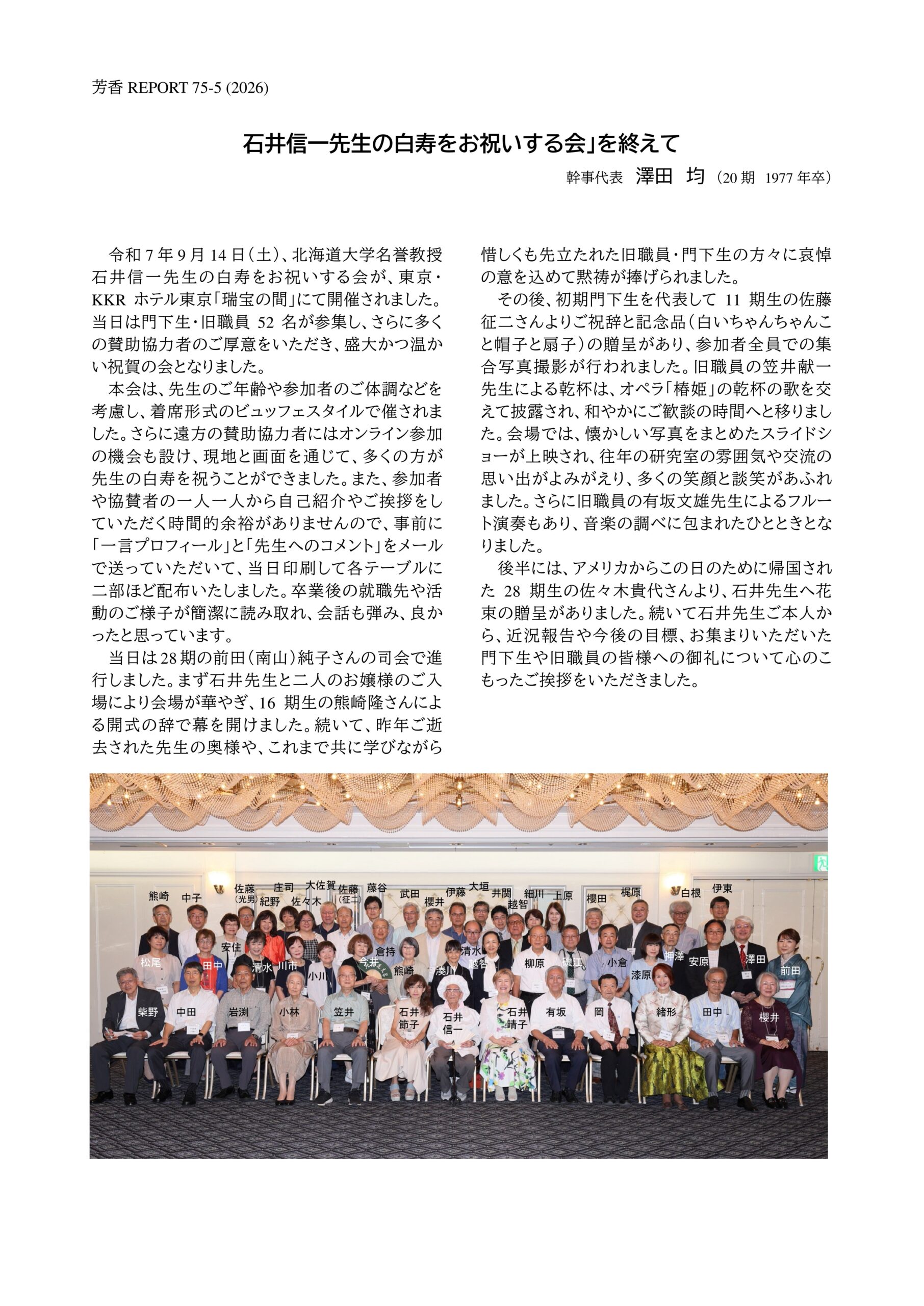 【芳香REPORT】石井信一先生の白寿をお祝いする会」を終えて/澤田 均(20期)